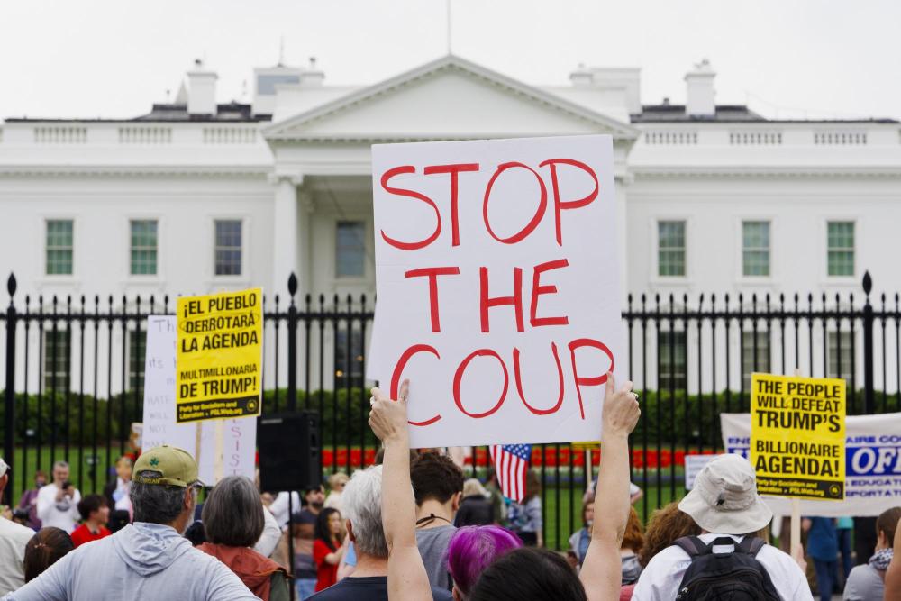4月19日,人們?cè)诿绹?guó)首都華盛頓白宮門前參加抗議活動(dòng)。美國(guó)多地19日舉行抗議活動(dòng),首都華盛頓、紐約、舊金山、波士頓等城市的民眾走上街頭,抗議現(xiàn)政府大規(guī)模裁員、加征關(guān)稅、驅(qū)逐移民等政策。新華社發(fā)(亞倫攝)