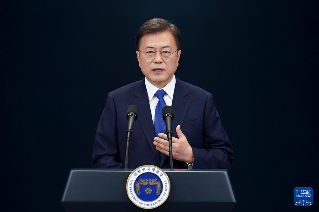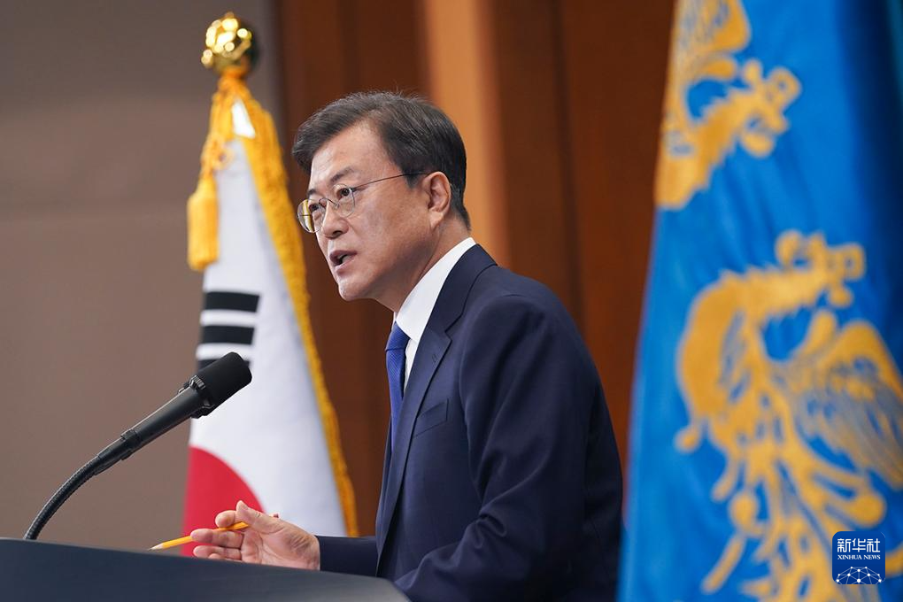 據(jù)韓聯(lián)社4月24日?qǐng)?bào)道,韓國(guó)前總統(tǒng)文在寅因涉嫌受賄被檢方提起訴訟。這張拍攝于2020年5月10日的資料照片顯示,時(shí)任韓國(guó)總統(tǒng)文在寅在韓國(guó)首爾青瓦臺(tái)發(fā)表講話。新華社發(fā)(青瓦臺(tái)供圖)