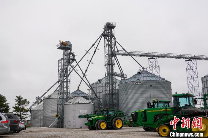 當?shù)貢r間4月25日,在美國艾奧瓦州首府得梅因市郊的金伯利農(nóng)場,多輛拖拉機停在谷倉附近?!≈行律缬浾?王帆 攝