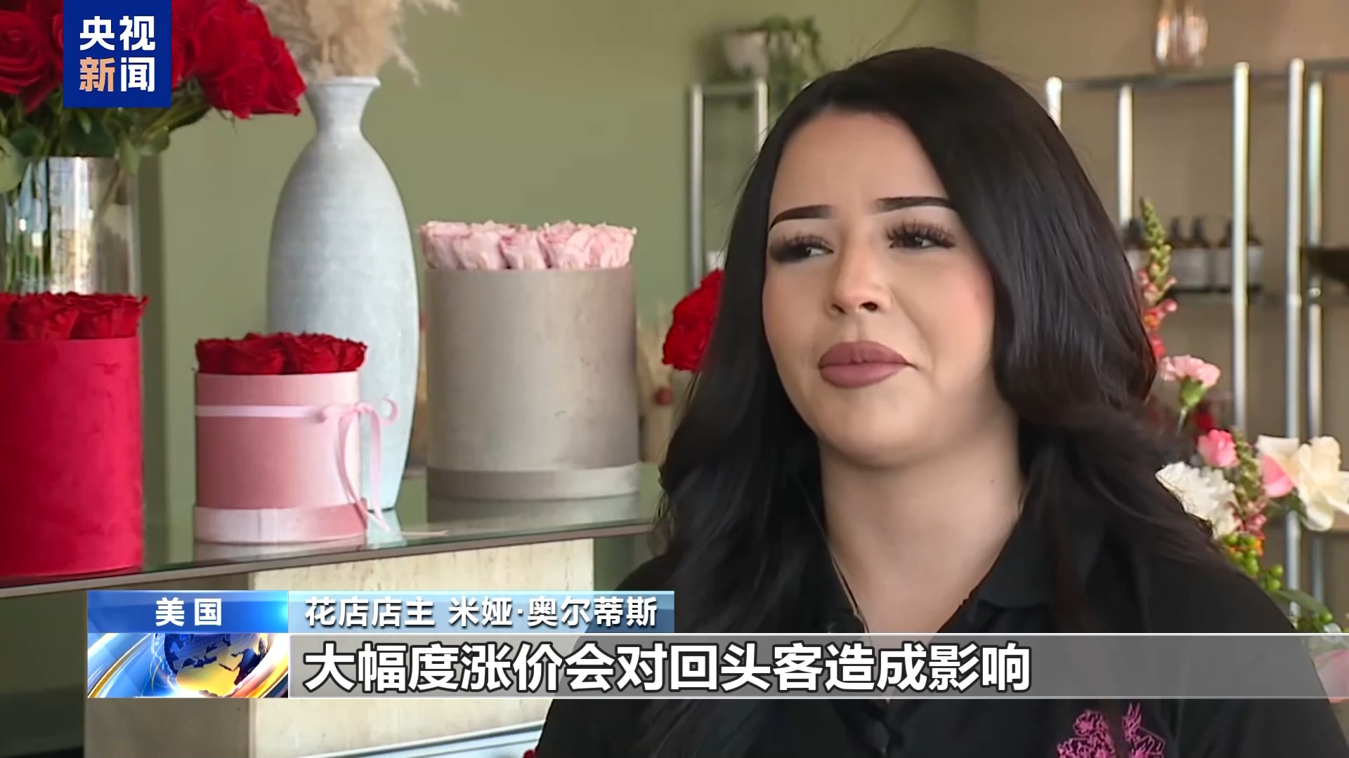 花店店主 米婭·奧爾蒂斯:關稅政策正在傷害像我家這樣的小企業(yè),我們的玫瑰是厄瓜多爾進口的。