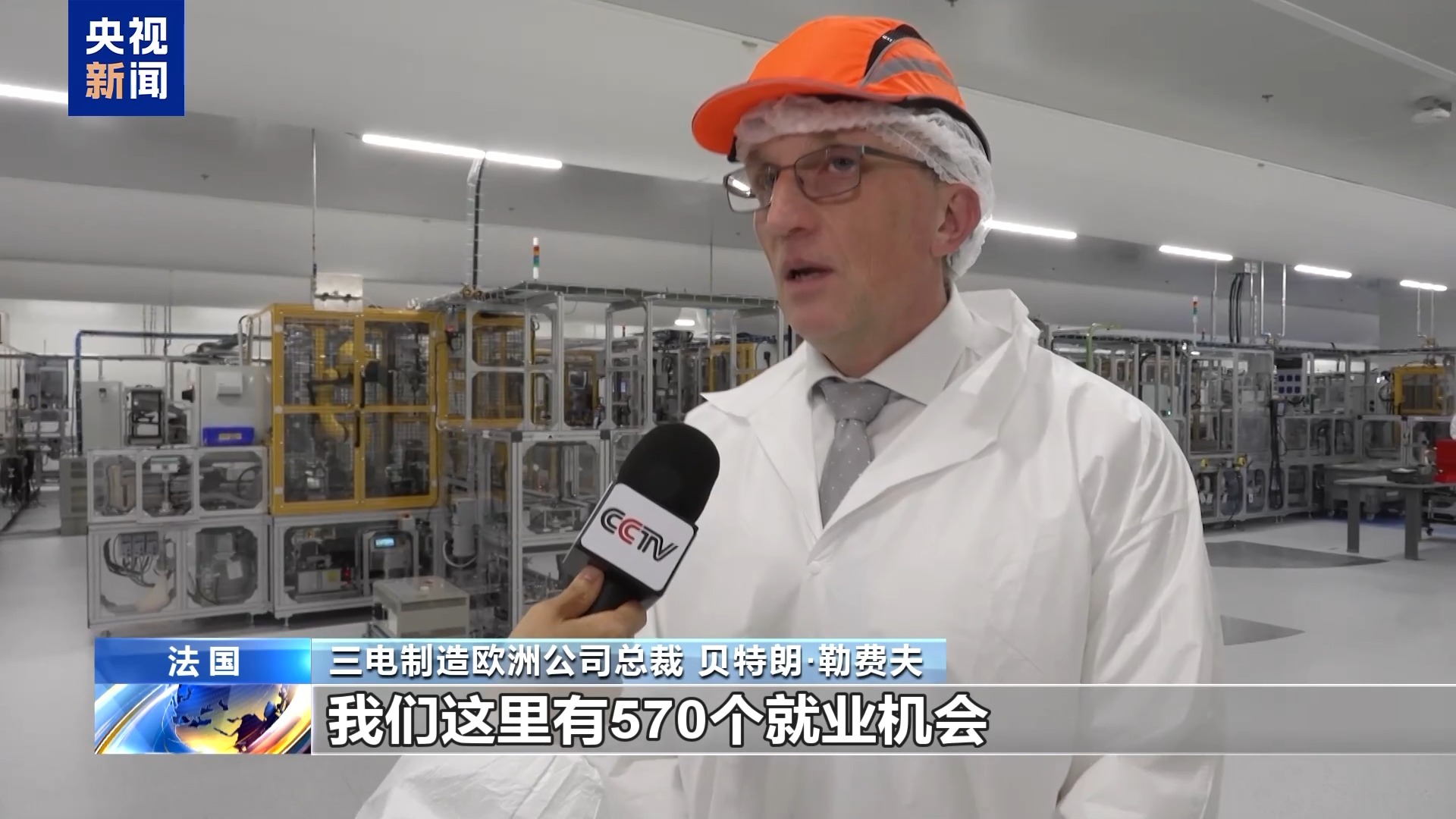 三電制造歐洲公司總裁 貝特朗·勒費夫:我們這里有570個就業(yè)機會,我們擁有一個技術中心,提供高質量的就業(yè)崗位,我們的生產線在技術上處于領先地位。