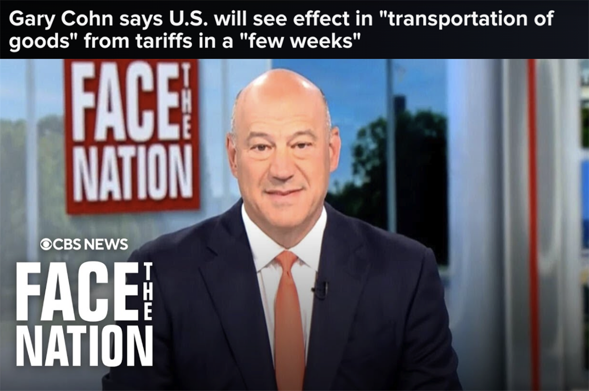 在特朗普第一個(gè)總統(tǒng)任期出任過總統(tǒng)首席經(jīng)濟(jì)顧問的加里·科恩日前在接受美國(guó)哥倫比亞廣播公司采訪時(shí)表示,鑒于進(jìn)口商品的分銷周期約為8周,這意味著美國(guó)政府4月初宣布的所謂“對(duì)等關(guān)稅”的實(shí)際影響將在5月底開始顯現(xiàn)。