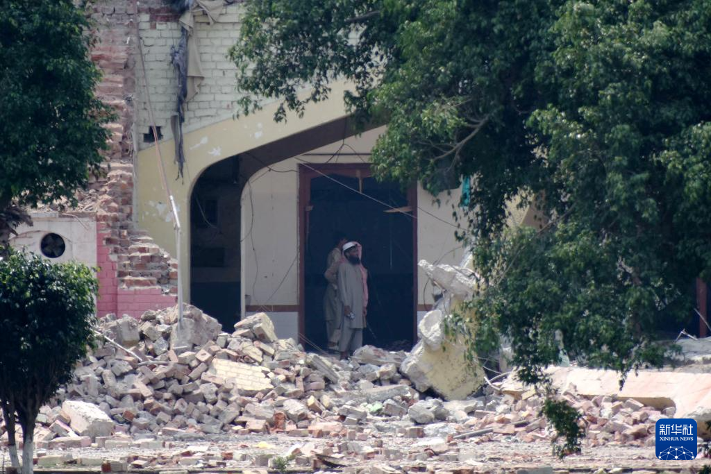 5月7日,人們在巴基斯坦東部旁遮普省謝赫布拉地區(qū)穆里德蓋鎮(zhèn)查看遭印度導(dǎo)彈破壞的建筑。新華社發(fā)(薩賈德攝)