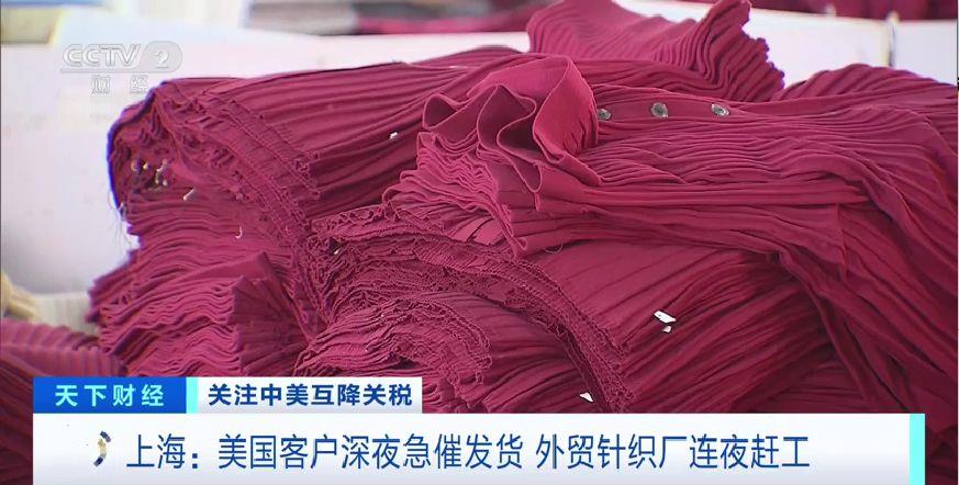 中美關(guān)稅調(diào)整后,上海的一家針織廠接到了美國(guó)客戶的催單,目前正在抓緊趕工生產(chǎn)。