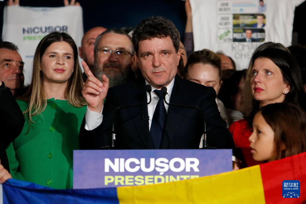 5月18日,在羅馬尼亞布加勒斯特,獨立候選人、布加勒斯特市長尼庫紹爾·達恩在總統(tǒng)選舉第一次投票后發(fā)表講話。新華社發(fā)(克里斯泰爾攝)