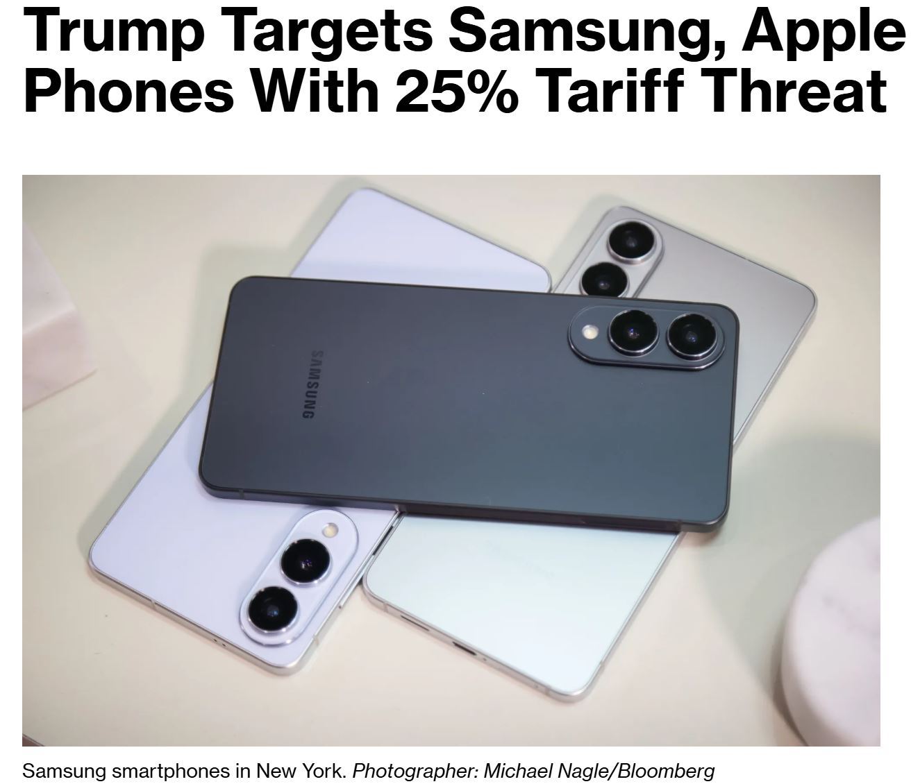 同樣是在23日,特朗普還威脅說,凡是在國外制造并在美國銷售的蘋果手機,都應該被征收至少25%的關(guān)稅。韓國三星電子公司和其他生產(chǎn)手機的企業(yè)也將面臨美國的關(guān)稅。相關(guān)政策預計從6月底開始實施。