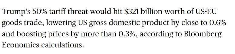 在歐盟委員會貿(mào)易委員謝夫喬維奇與美國貿(mào)易代表格里爾23日就關(guān)稅問題通電話后,特朗普在社交媒體上發(fā)文抱怨說,歐盟在貿(mào)易問題“很難打交道”,美歐貿(mào)易磋商“毫無進展”。為此,他建議從6月1日起對歐盟商品征收50%的關(guān)稅。