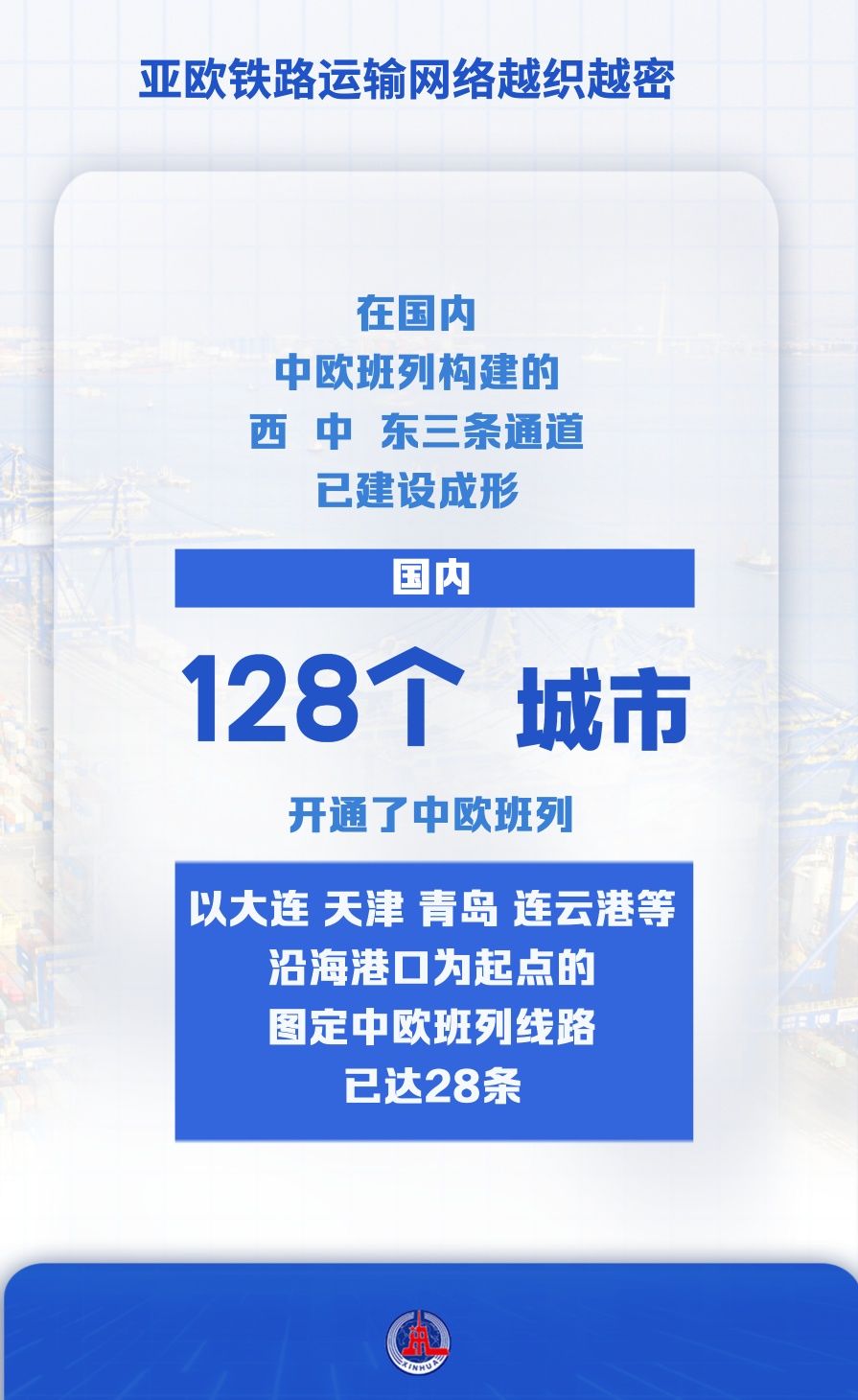 在境外,中歐班列與沿線國家持續(xù)推動通道多元化發(fā)展,班列可通達(dá)歐洲26個國家229個城市以及11個亞洲國家超過100個城市。
