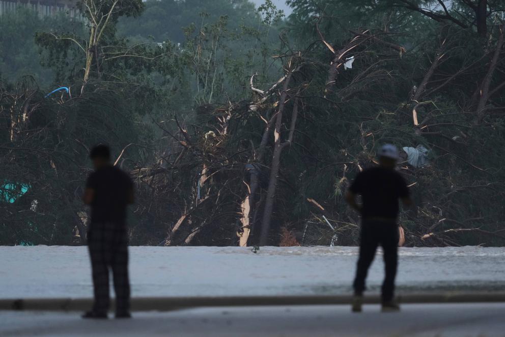 7月4日,在美國(guó)得克薩斯州英格勒姆市,人們?cè)诠线_(dá)盧普河沿岸查看。新華社/美聯(lián)