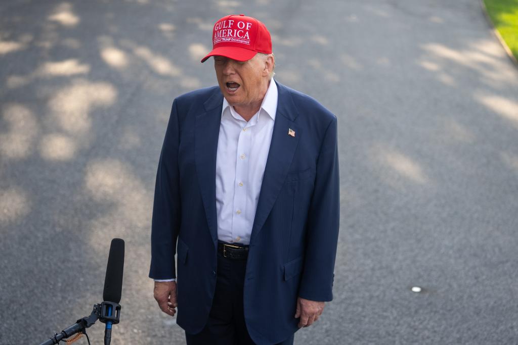 7月1日,在美國首都華盛頓白宮,美國總統(tǒng)特朗普在登機前回答記者提問。新華社記者胡友松攝