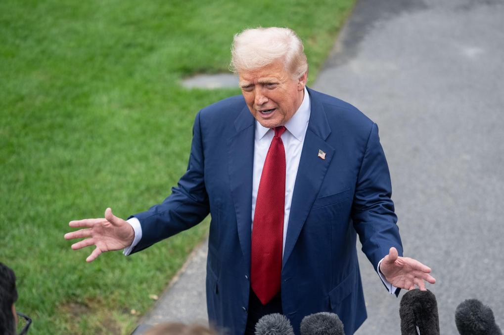 8月1日,在美國(guó)首都華盛頓白宮,美國(guó)總統(tǒng)特朗普回答提問。新華社記者胡友松攝