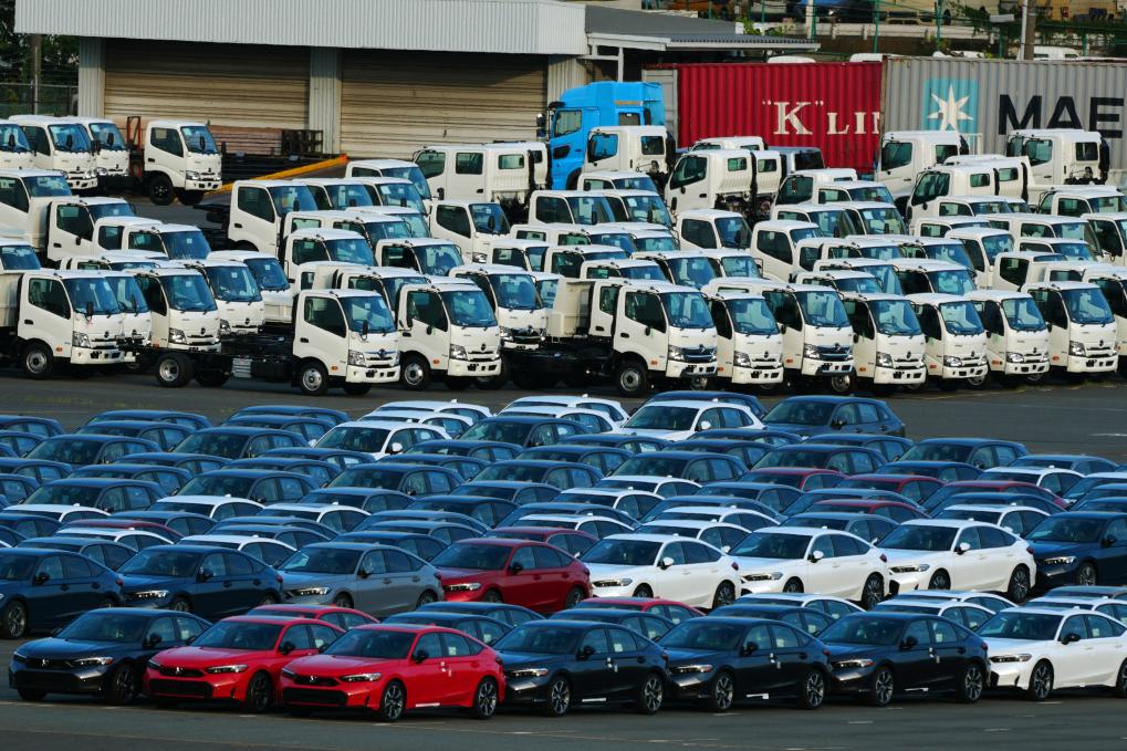 這是7月3日在日本橫濱一處港口拍攝的待售車(chē)輛。新華社記者賈浩成攝
