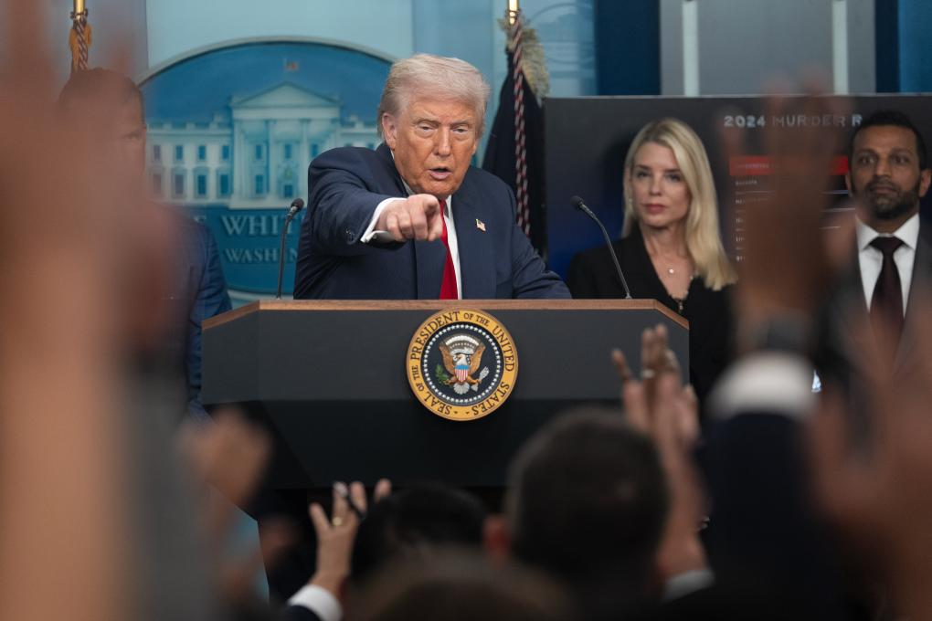 8月11日,美國總統(tǒng)特朗普在華盛頓白宮出席新聞發(fā)布會。新華社記者胡友松攝