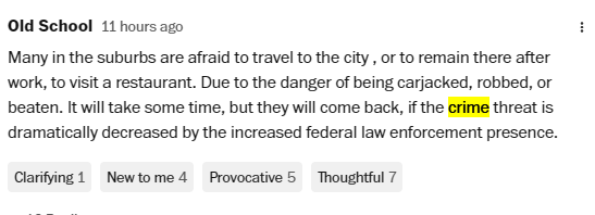 《華盛頓郵報(bào)》這篇名為“這個(gè)城市死了”的文章引發(fā)美國人激烈討論,讀者們在評論區(qū)留下了890多條評論,有批評軍隊(duì)上街的,有支持打擊犯罪的,也有吐槽當(dāng)?shù)仫埖甑摹?/p>