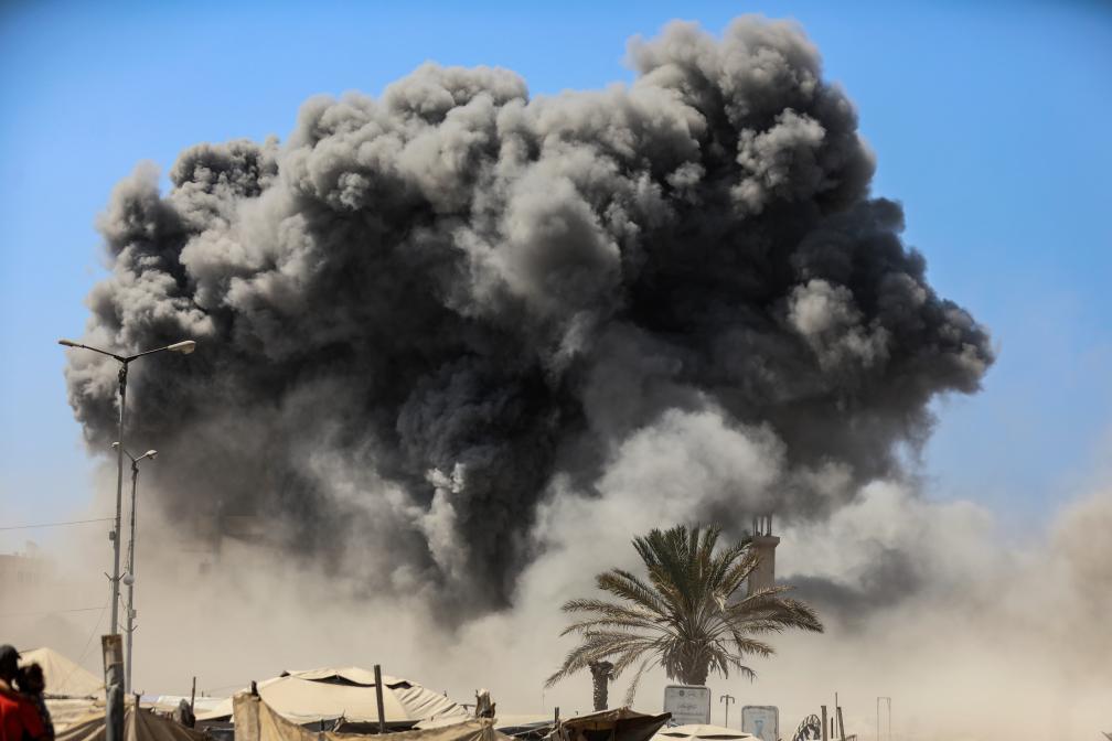 9月5日,加沙城一棟建筑遭以色列軍隊空襲后升起濃煙。新華社發(fā)(里澤克·阿卜杜勒賈瓦德攝)