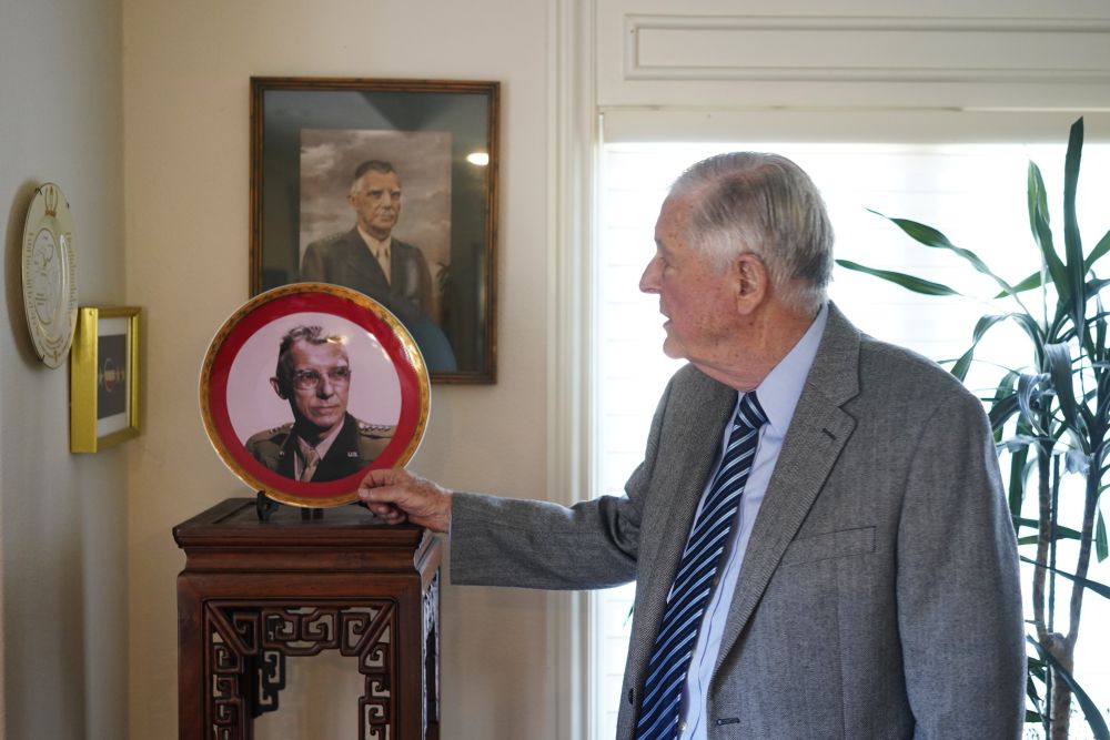 在位于美國舊金山灣區(qū)的家中,耄耋之年的伊斯特布魯克接受新華社記者專訪時(shí),特意翻出了一張日本在“密蘇里”號(hào)戰(zhàn)列艦上簽署無條件投降書的老照片,用手指著照片中甲板上軍官站立的一側(cè),“史迪威就在這里”。