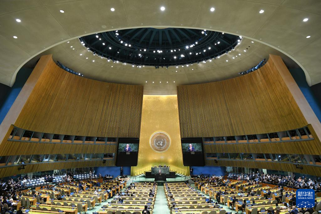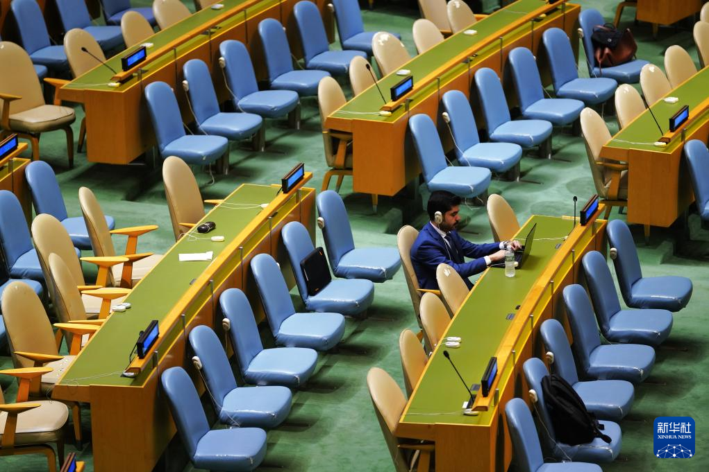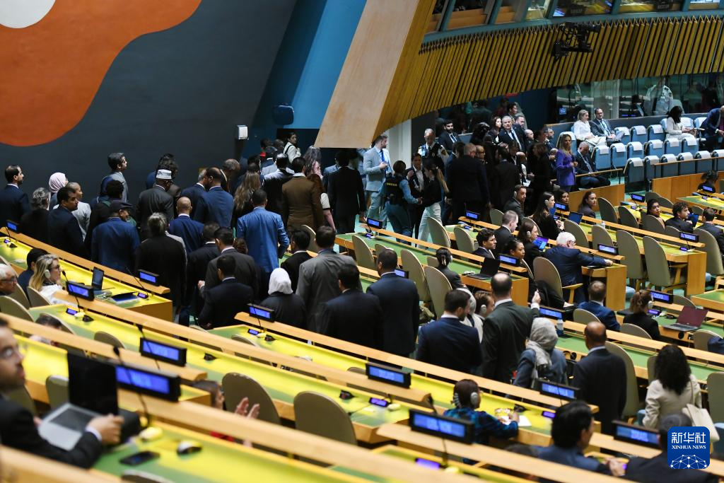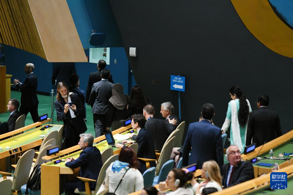 9月26日,在位于紐約的聯(lián)合國(guó)總部,眾多代表退場(chǎng)抗議。新華社記者李睿攝
