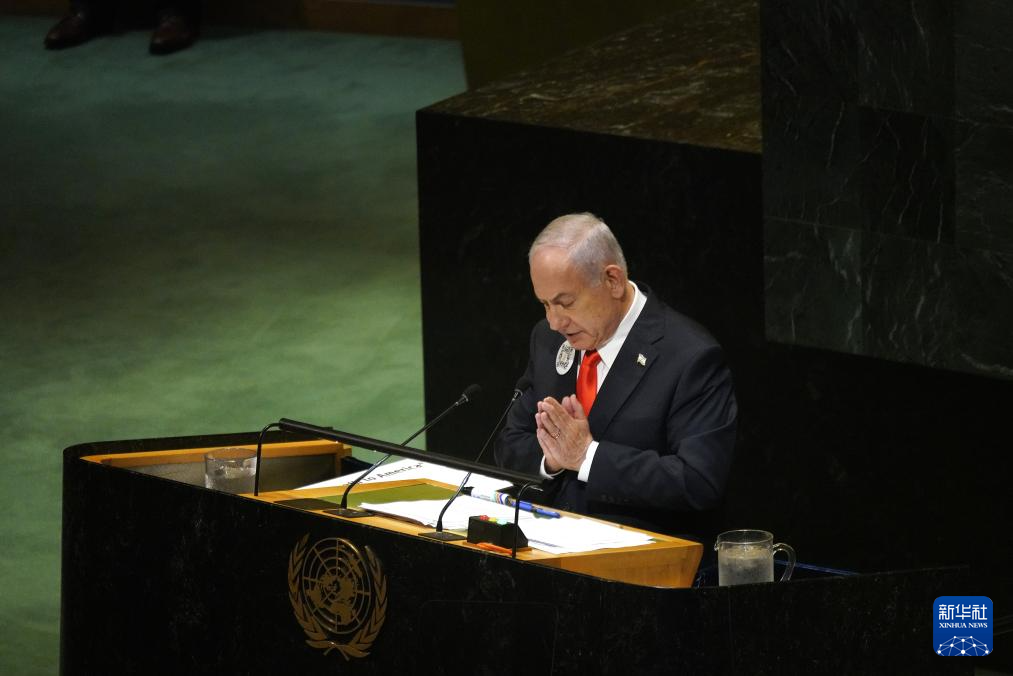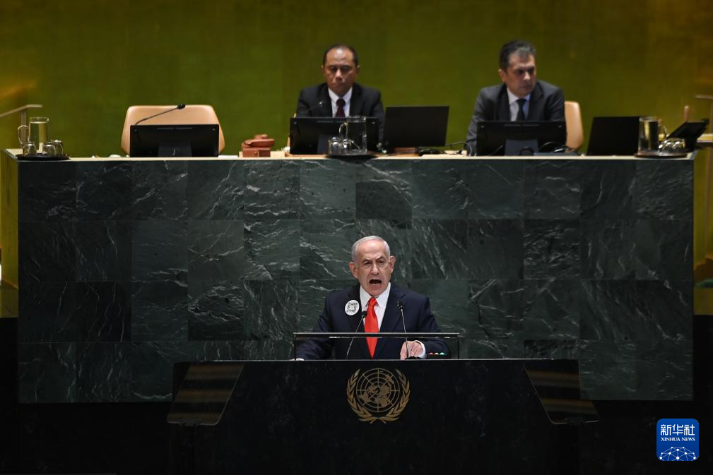 當(dāng)日,以色列總理內(nèi)塔尼亞胡在第80屆聯(lián)合國(guó)大會(huì)一般性辯論發(fā)言。眾多聯(lián)合國(guó)會(huì)員國(guó)代表起身離席,退場(chǎng)抗議。新華社記者吳曉凌攝