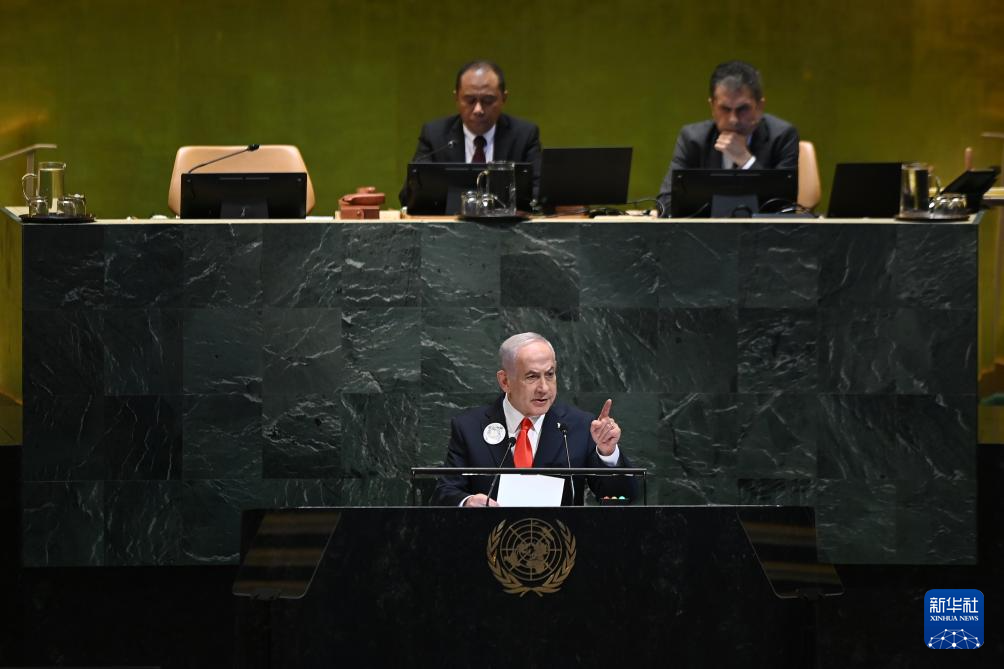9月26日,在位于紐約的聯(lián)合國(guó)總部,以色列總理內(nèi)塔尼亞胡在第80屆聯(lián)合國(guó)大會(huì)一般性辯論發(fā)言。眾多聯(lián)合國(guó)會(huì)員國(guó)代表起身離席,退場(chǎng)抗議。新華社記者吳曉凌攝