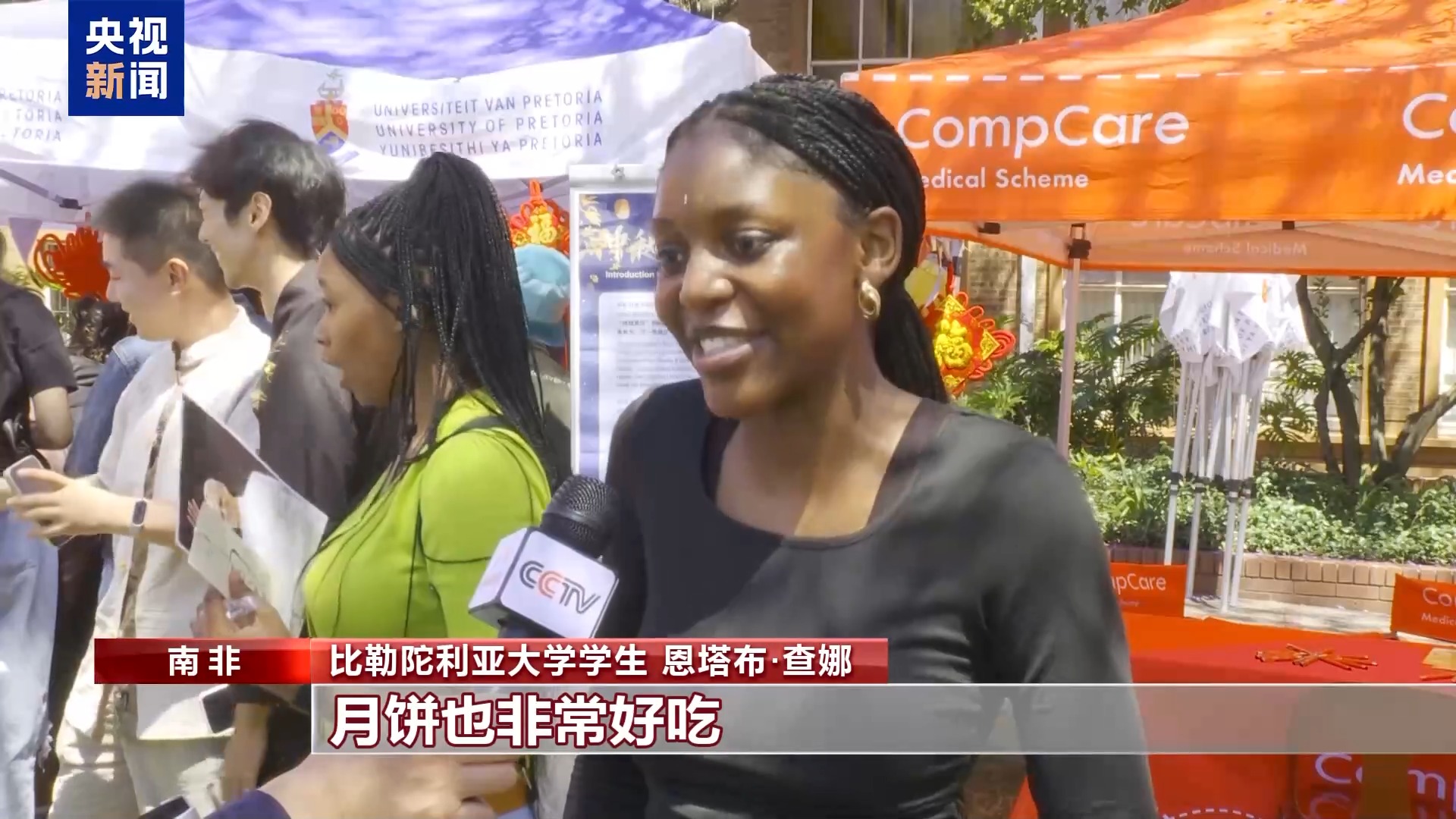 南非比勒陀利亞大學(xué)學(xué)生 恩塔布·查娜:中秋節(jié)讓我覺得很溫馨,這是我第一次看到中國人穿漢服。我品嘗了中國茶,一切都很棒,月餅也非常好吃。
