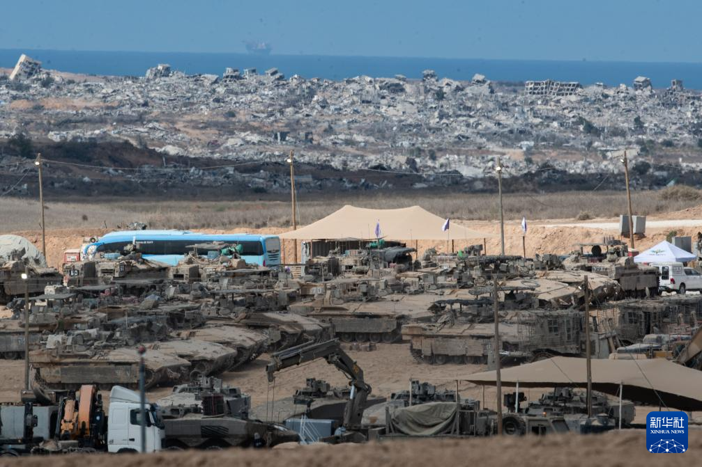 這是10月10日停火生效后拍攝的位于加沙邊境的以軍部隊(duì)。新華社記者 陳君清 攝