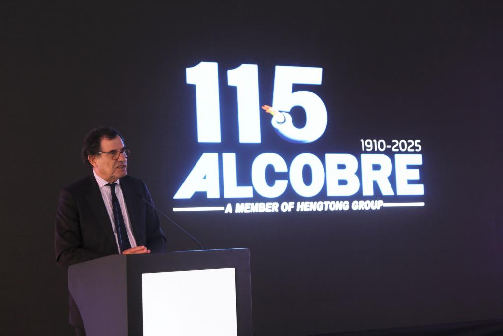 10月3日,葡萄牙經(jīng)濟(jì)兼國土融合部長曼努埃爾·卡斯特羅·阿爾梅達(dá)在葡萄牙北部奧瓦爾市舉行的阿爾科夫雷電纜廠115周年慶典儀式上致辭。新華社記者荀偉攝