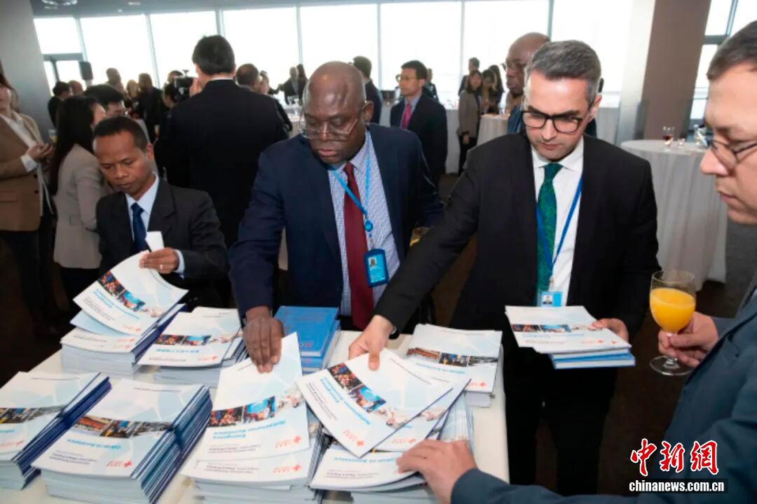 當(dāng)?shù)貢r(shí)間2023年4月19日,“全球發(fā)展倡議新進(jìn)展可持續(xù)發(fā)展議程新行動(dòng)”主題展覽在紐約聯(lián)合國(guó)總部舉行。圖為與會(huì)嘉賓取閱國(guó)合署發(fā)布的新報(bào)告——《國(guó)際發(fā)展合作的中國(guó)實(shí)踐》。 中新社記者 廖攀 攝