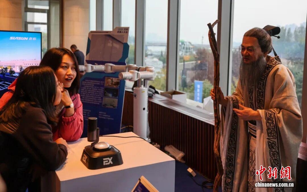 2025年10月17日,2025沈陽(yáng)機(jī)器人大會(huì)在遼寧沈陽(yáng)開幕。圖為觀眾與交互型仿生人形機(jī)器人孔子互動(dòng)。 中新社記者 于海洋 攝