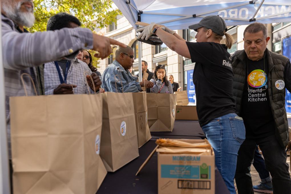 11月5日,在美國首都華盛頓,聯(lián)邦雇員排隊領取免費食物。新華社記者胡友松攝