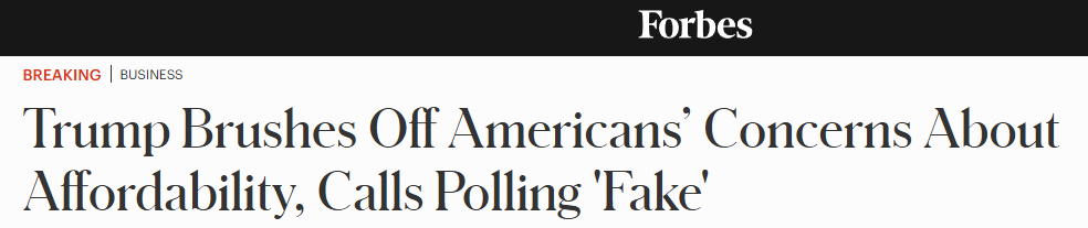 福布斯新聞網(wǎng)站報道稱,本月早些時候的調(diào)查顯示,超過四分之三的美國人對個人財務(wù)狀況感到憂慮,而政府卻質(zhì)疑民調(diào)的真實(shí)性,稱其為“虛假信息”。然而,多數(shù)民眾正經(jīng)歷的是物價上漲帶來的支出增加。盡管特朗普政府宣稱“生活成本已大幅下降”,但電費(fèi)、家具、電子產(chǎn)品及食品雜貨等價格自其就職以來便普遍上漲。