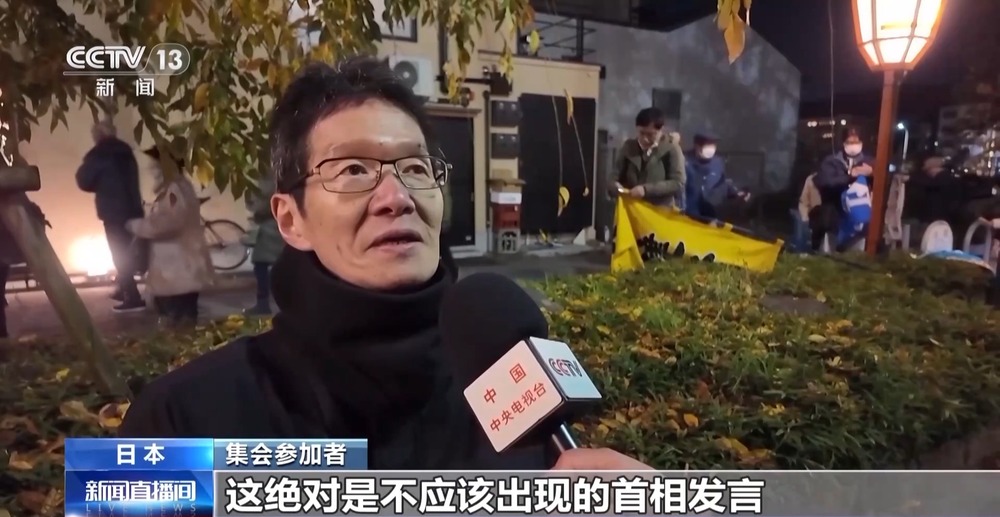 集會參加者:我當(dāng)然認(rèn)為高市應(yīng)該撤回錯誤言論,對于國民來說,這絕對是不應(yīng)該出現(xiàn)的首相發(fā)言,我認(rèn)為這是違反憲法的。