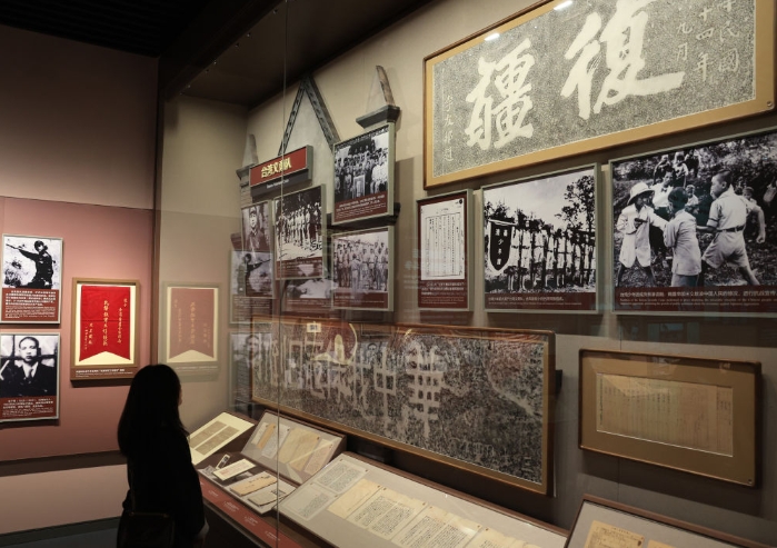 10月25日,參觀者在中國人民抗日戰(zhàn)爭(zhēng)紀(jì)念館參觀《不屈的寶島 丹心向祖國——臺(tái)灣同胞抗日史實(shí)展》。新華社記者 張晨霖 攝