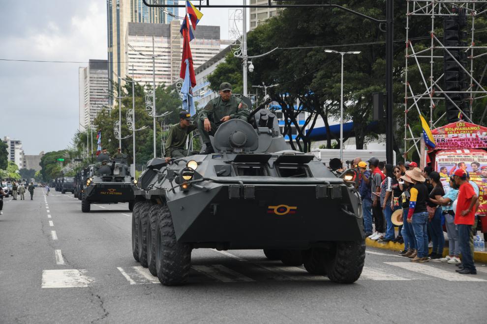 9月23日,在委內瑞拉首都加拉加斯,參加游行的裝甲車輛列隊行進。當天,加拉加斯舉行大規(guī)模游行,呼吁保衛(wèi)委內瑞拉主權與和平,反對美國在加勒比海域的軍事威脅。新華社發(fā)(馬科斯·薩爾加多攝)