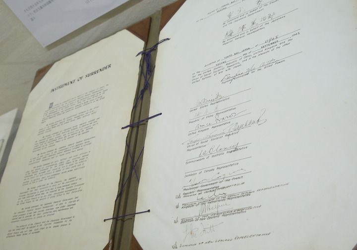 這是2015年9月1日在日本東京外務(wù)省外交史料館內(nèi)拍攝的日本二戰(zhàn)無(wú)條件投降書(shū)原件。新華社記者 劉天 攝