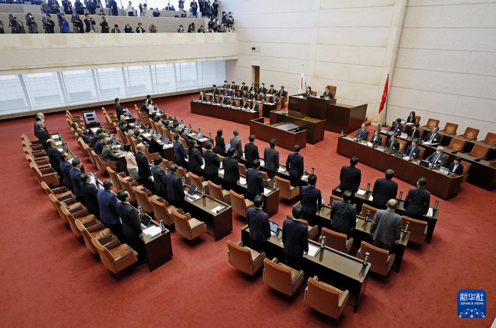 這是12月22日在日本新潟縣拍攝的縣議會現(xiàn)場。新華社/共同社