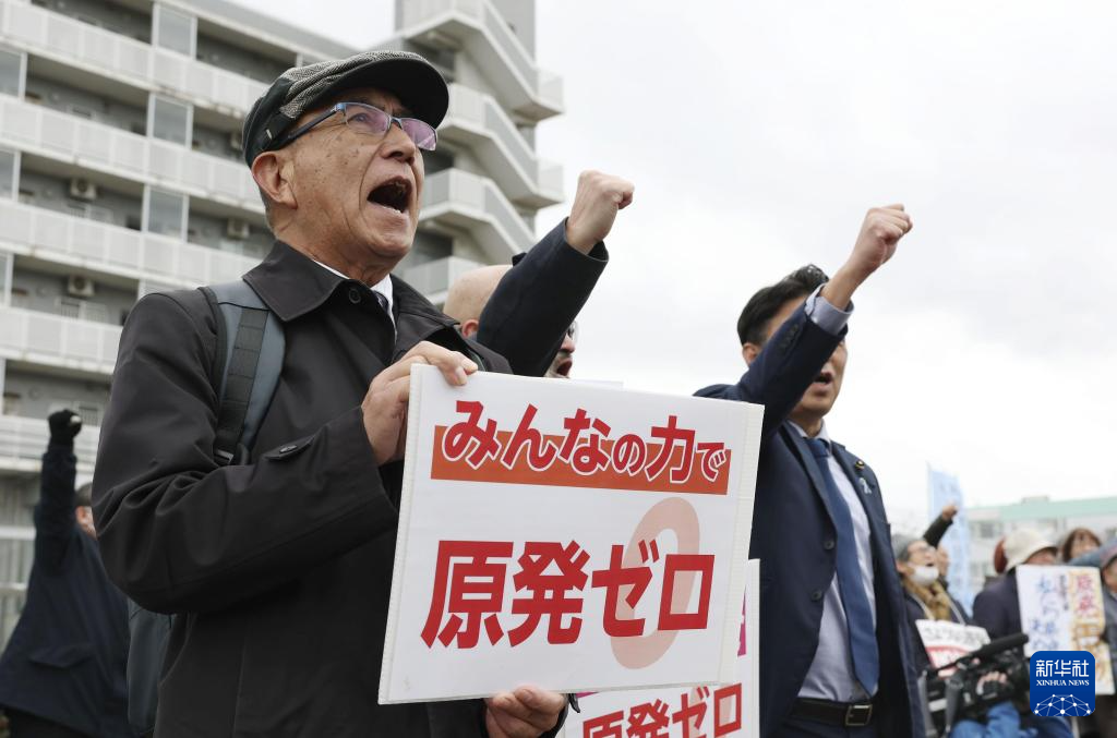 12月22日,民眾在日本新潟縣抗議重啟柏崎刈羽核電站。新華社/共同社