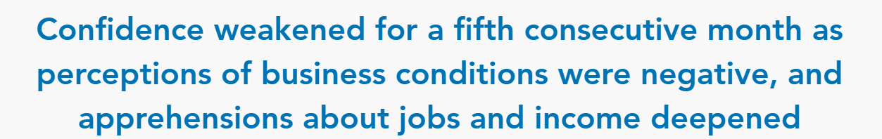 美國研究機構(gòu)世界大型企業(yè)研究會12月23日發(fā)布的初步調(diào)查數(shù)據(jù)顯示,由于對商業(yè)環(huán)境看法負面,對就業(yè)和收入的擔憂加劇,美國12月份消費者信心指數(shù)從11月份修訂后的92.9進一步下滑至89.1,連續(xù)第五個月走低,為今年4月以來的最低水平。