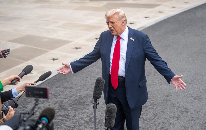 2025年9月30日,在美國(guó)首都華盛頓白宮,美國(guó)總統(tǒng)特朗普回答記者提問時(shí)表示,美國(guó)政府正在考慮打擊通過陸路向美國(guó)走私毒品的委內(nèi)瑞拉販毒集團(tuán)。新華社記者 胡友松 攝