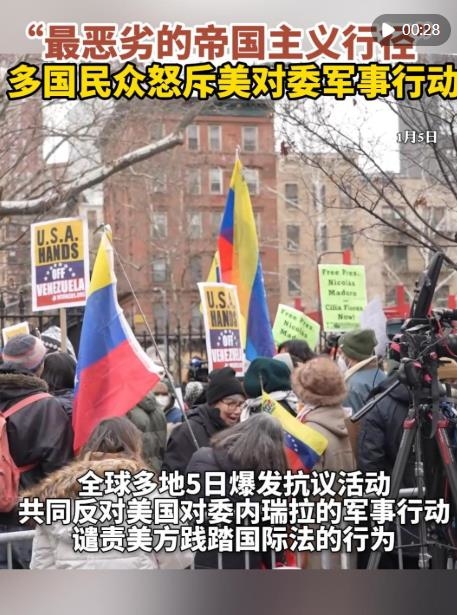 當(dāng)?shù)貢r(shí)間5日中午,遭美國(guó)強(qiáng)行控制的委內(nèi)瑞拉總統(tǒng)馬杜羅夫婦在美國(guó)紐約南區(qū)聯(lián)邦地區(qū)法院首次出庭,拒絕美方一切所謂指控。當(dāng)天,全球多地爆發(fā)抗議活動(dòng),反對(duì)美國(guó)對(duì)委內(nèi)瑞拉的軍事行動(dòng),譴責(zé)美方踐踏國(guó)際法的行為。