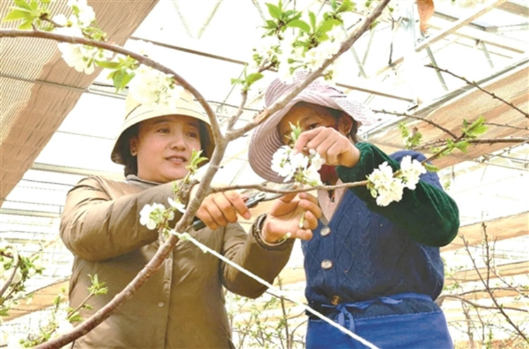 圖為嘎瑪旺堆夫婦正在打理自家溫室 攝影:曲杰
