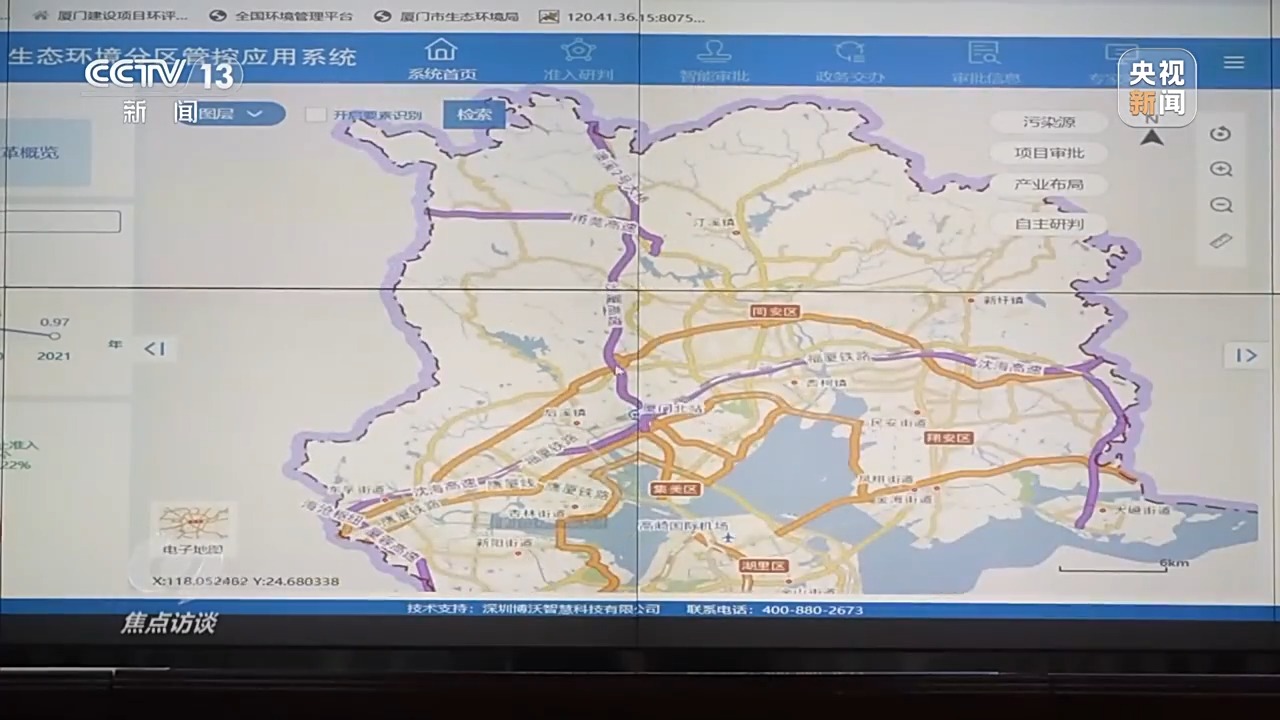 福建廈門市生態(tài)環(huán)境局環(huán)評(píng)處處長(zhǎng) 詹源:我們?cè)谙到y(tǒng)里面融入了國(guó)土空間、市政設(shè)施、產(chǎn)業(yè)布局以及生態(tài)環(huán)境,一共有207個(gè)矢量圖層,在這里面可以查看到空間信息、污水管網(wǎng)設(shè)置、產(chǎn)業(yè)布局規(guī)劃等信息。同時(shí),我們還梳理了10萬(wàn)多條準(zhǔn)入條件,形成了分區(qū)管控的智慧內(nèi)核。