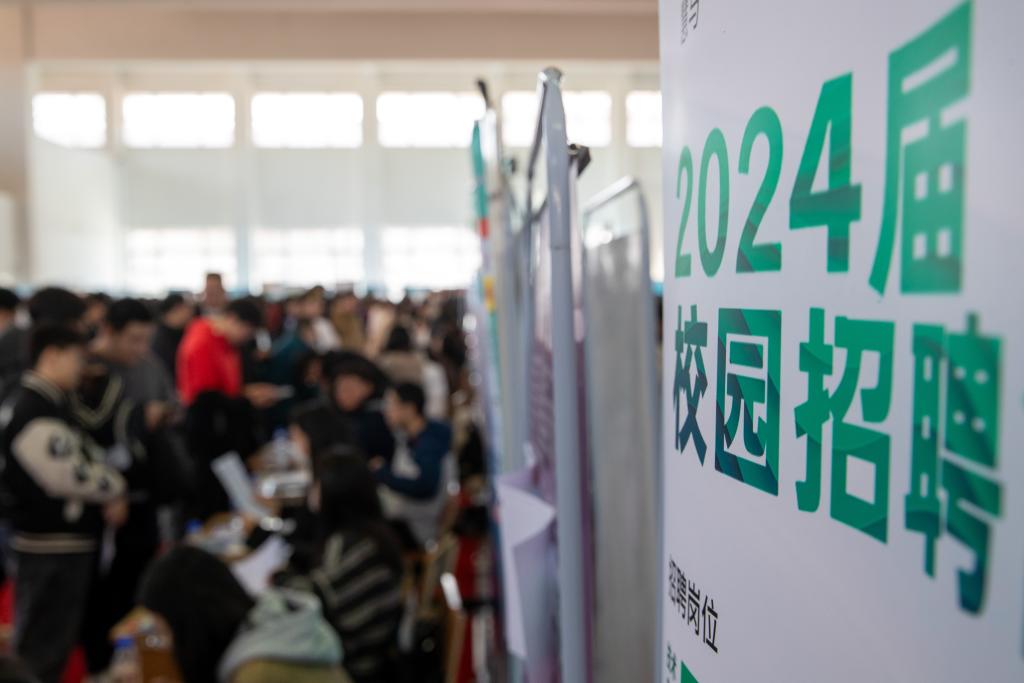 4月9日,求職者在聯(lián)合招聘會(huì)現(xiàn)場(chǎng)與招聘方代表溝通交流。新華社記者 張濤 攝