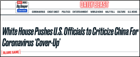 ▲美國《野獸日報》報道截圖,題為《白宮推動官員批評中國掩蓋新冠肺炎疫情》