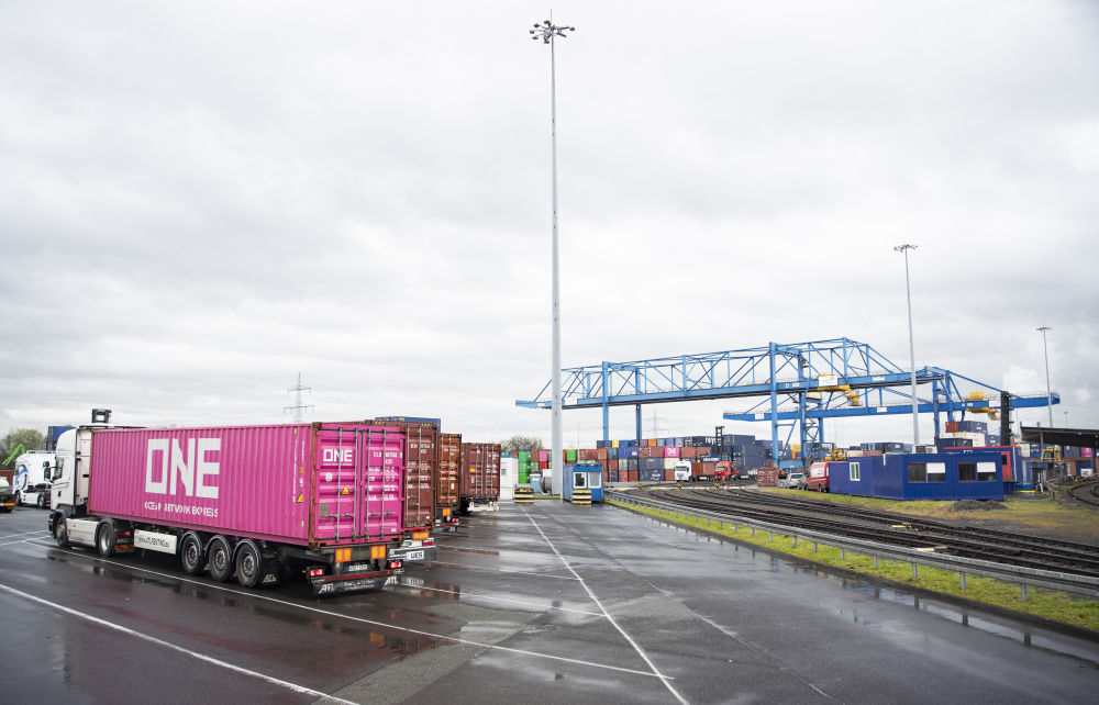 位于萊茵河西岸的杜伊斯堡港DIT貨運(yùn)場(chǎng)站,是中歐班列的主要操作場(chǎng)站。目前,每周約有60列中歐班列抵達(dá)這里。數(shù)臺(tái)幾十米高的起重機(jī)和各類裝卸設(shè)備緊密配合作業(yè),將卸下的集裝箱碼放整齊,形成一座座連綿不絕的“小山”。隨后,這些跋涉萬里、種類豐富的中國(guó)貨品通過水路、鐵路或公路運(yùn)輸,送往周邊城市和其他歐洲國(guó)家。