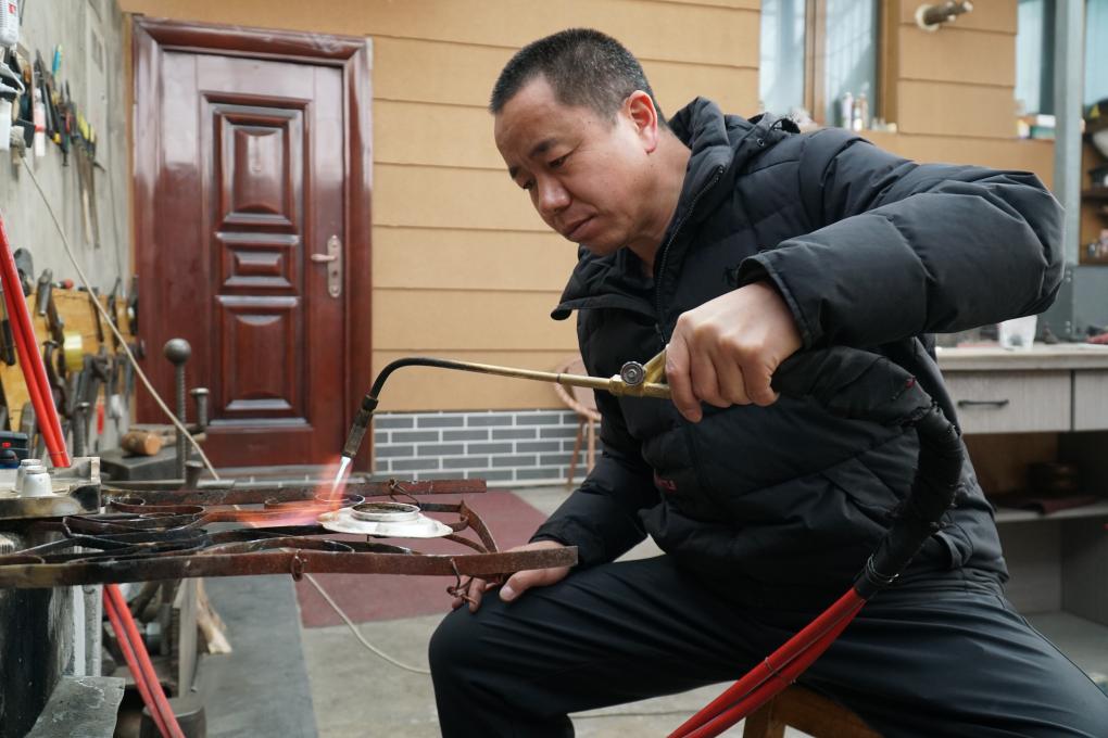 王富邦居住的青海省西寧市湟中區(qū)魯沙爾鎮(zhèn)陽坡村,是湟中“銀銅器制作及鎏金技藝”發(fā)祥地。100多年前,這里因緊鄰藏傳佛教名寺塔爾寺而成為銀銅器匠人的聚居地。王富邦介紹說:“一開始只是外來的漢族匠人鍛造宗教器物,后來本地的漢、藏、土族群眾也加入進(jìn)來,村莊因‘家家有作坊’而逐漸揚(yáng)名。”