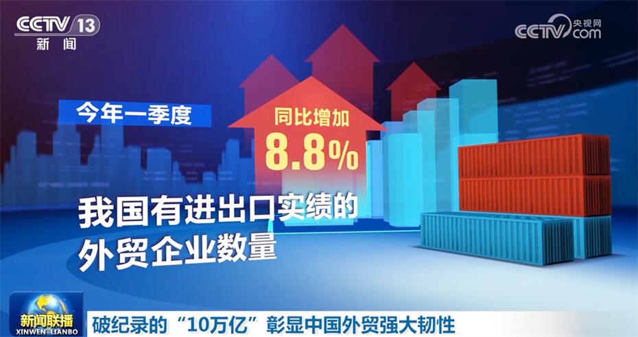 一季度,我國貨物貿(mào)易進(jìn)出口規(guī)模歷史同期首次突破10萬億元,增速創(chuàng)6個(gè)季度以來新高。一季度進(jìn)出口令人欣喜的數(shù)據(jù)彰顯了中國外貿(mào)的強(qiáng)大韌性,提振了人們對(duì)實(shí)現(xiàn)今年經(jīng)濟(jì)增長目標(biāo)的信心。