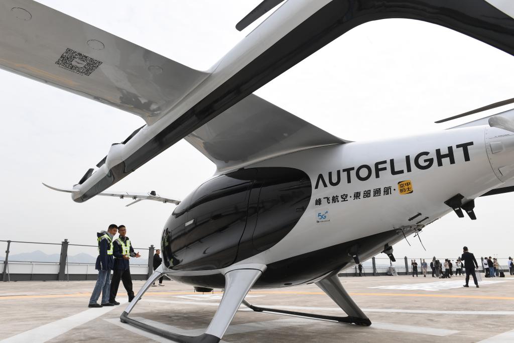 2月27日,在深圳蛇口郵輪母港,工作人員查看5座電動(dòng)垂直起降航空器盛世龍。新華社記者 毛思倩 攝