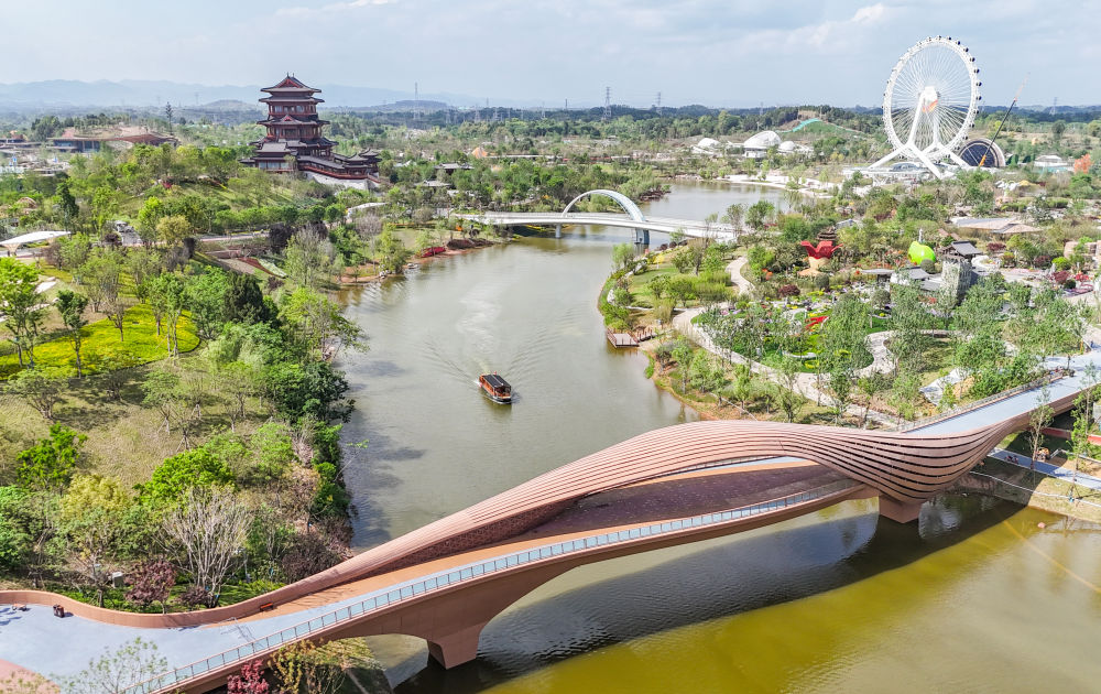 這是成都世園會(huì)主會(huì)場入口(無人機(jī)照片,2024年4月14日攝)。新華社記者 江宏景 攝
