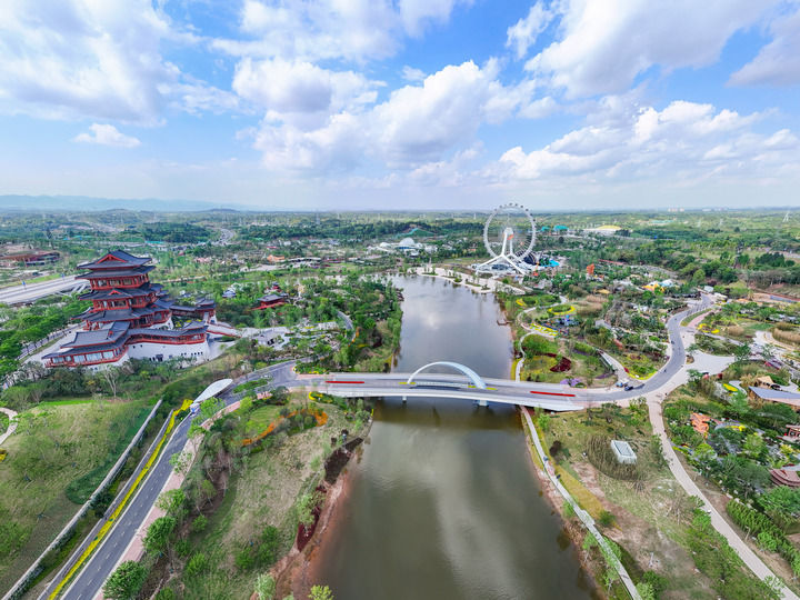 這是2024年4月23日拍攝的成都世園會(huì)郫都分會(huì)場(無人機(jī)照片)。新華社記者 王曦 攝