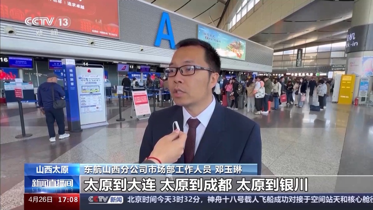 東航山西分公司市場部工作人員鄧玉琳 :從目前航班的運(yùn)力情況來看,太原到大連,太原到成都,太原到銀川,太原到重慶、寧波這些城市,整個五一期間的預(yù)訂情況是比較好的。主要的到達(dá)目的地涉及國內(nèi)30余個大中小城市,還有兩個國際和地區(qū)航點(diǎn)。目前整體的運(yùn)力投入,能夠極大地滿足和方便廣大旅客的“五一”出行需求。